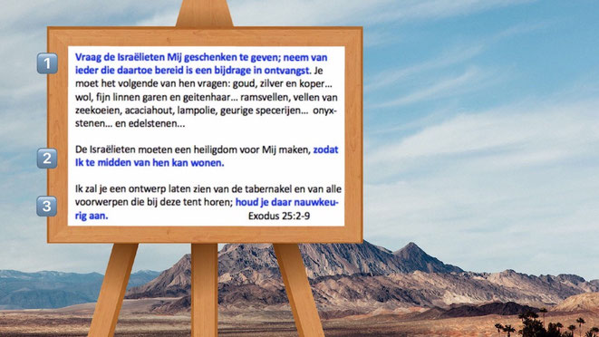 Drie aspecten uit deze tekst (Exodus 25:2-9) verdienen bijzondere aandacht.
